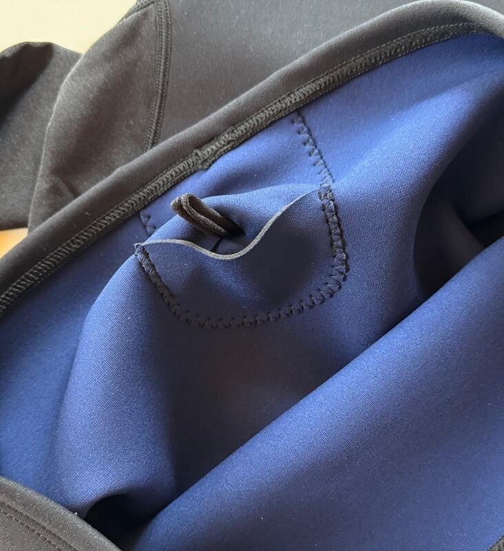 ボディー前身ごろ後ろ身頃が、1ミリクロロプレーンのウェット素材で、フードと袖部分がラッシュ素材のオペロンジャージ
