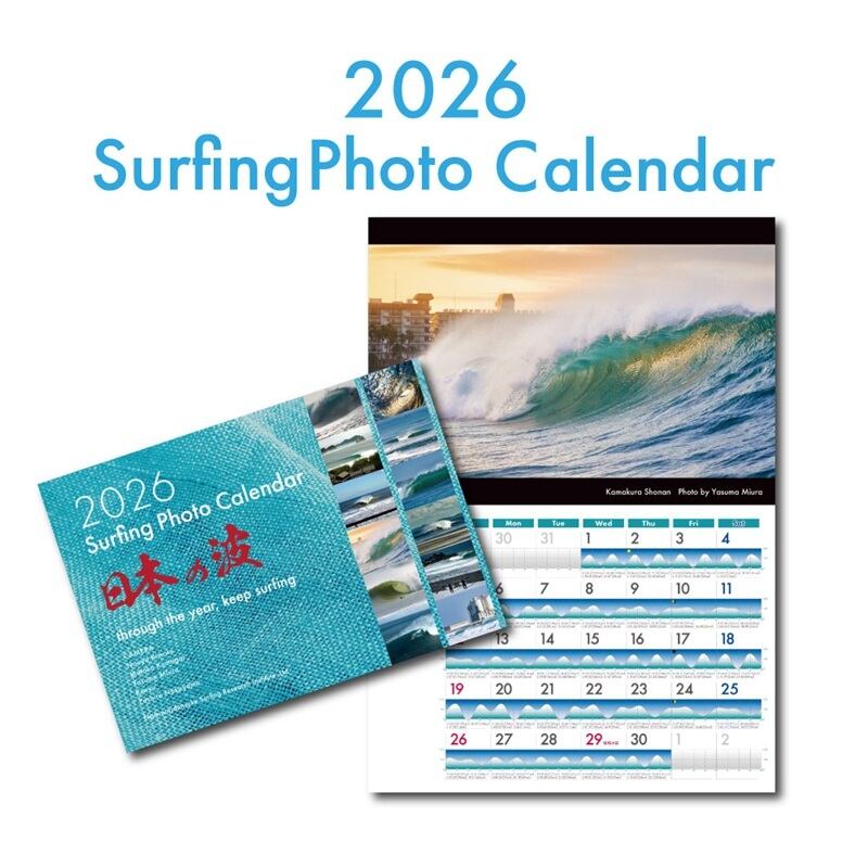 「日本の波」そして「Through The Year, Keep Surfing.」をテーマにした、サーフィンフォトカレンダー2026年度版(令和8年)。