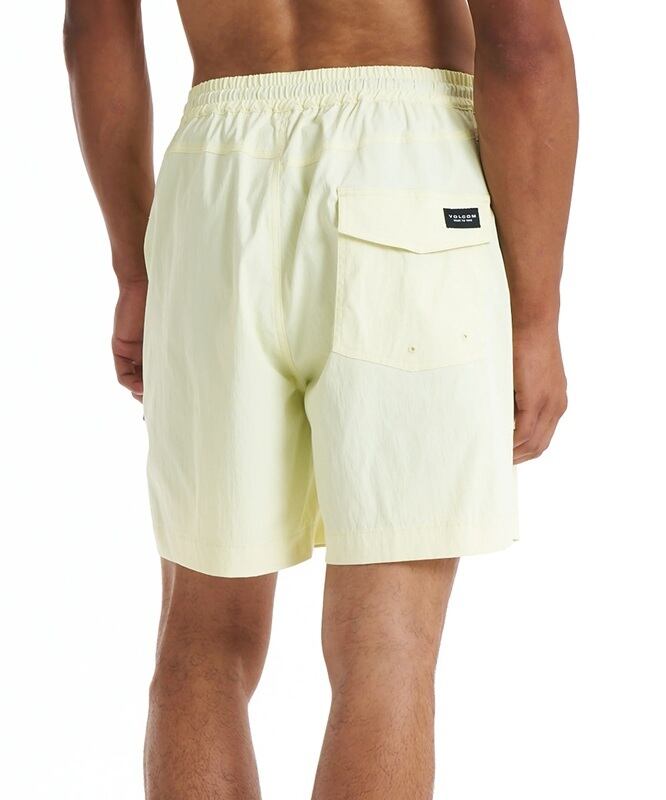 リラックスした着用感を提供する17インチ丈のジャムショーツ。ウエスト部分は伸縮性に優れたゴム仕様に加え、ドローコードでのサイズ調節が可能。両サイドのポケットと、フラップ付きのバックポケットを装備し、収納性と実用性を高めている。左裾にはVOLCOMを象徴するロゴパッチを配し、バックポケットにもブランドタグをあしらった。サーフィンなどのアクティブなシーンからデイリーユースまで幅広く対応するアイテム。軽量で動きやすい素材感により、快適な着心地を維持する